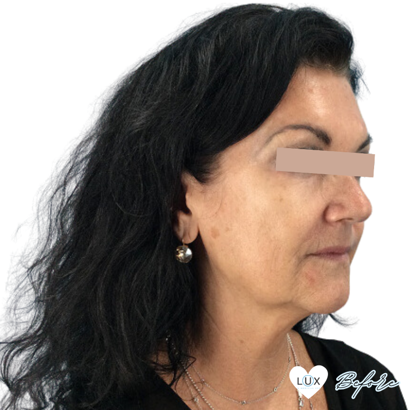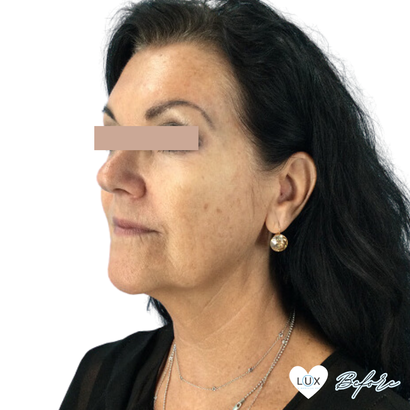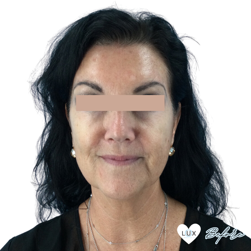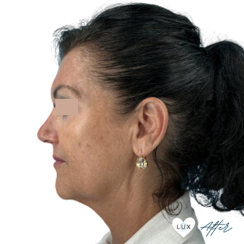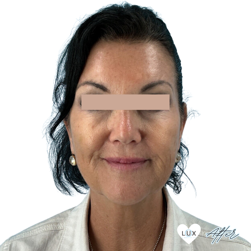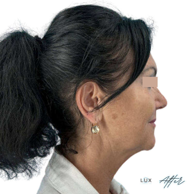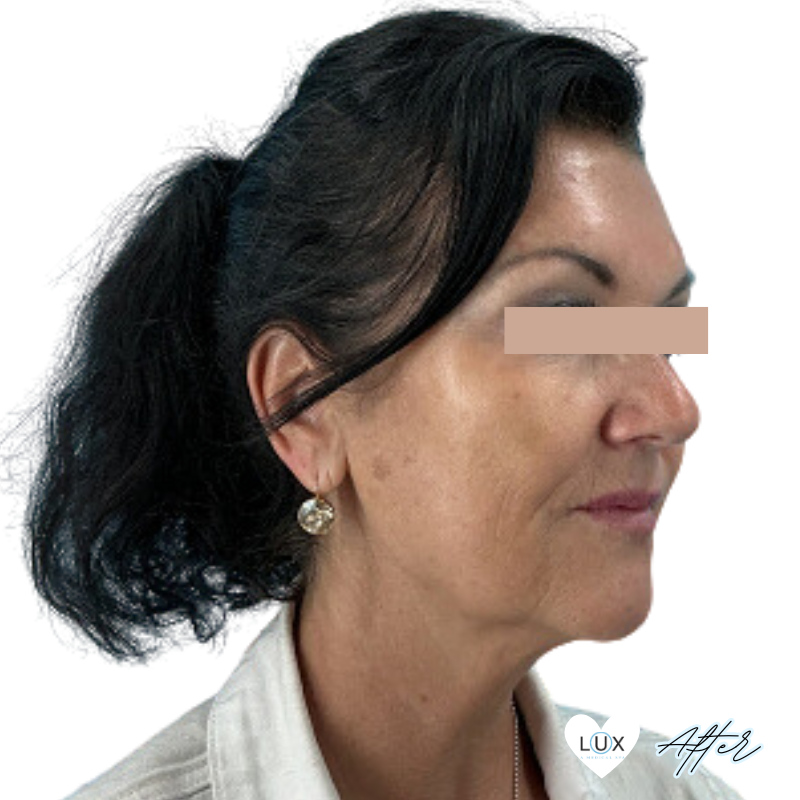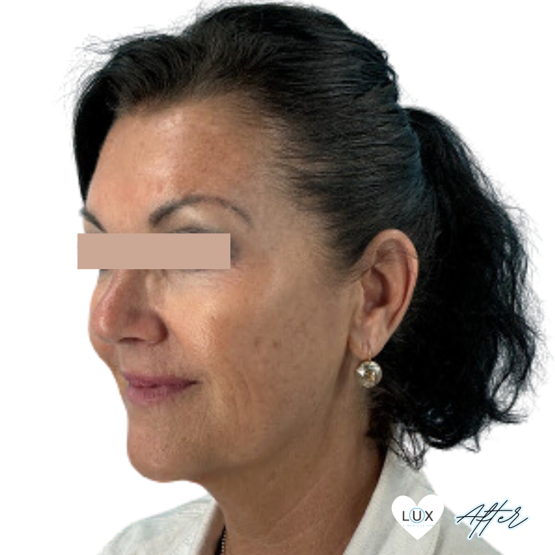 This patient received a total of 4cc of Juvederm Voluma to the cheeks and marionette lines to address volume loss. Patient received 0.5cc of Juvederm Volbella to the lips.