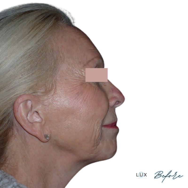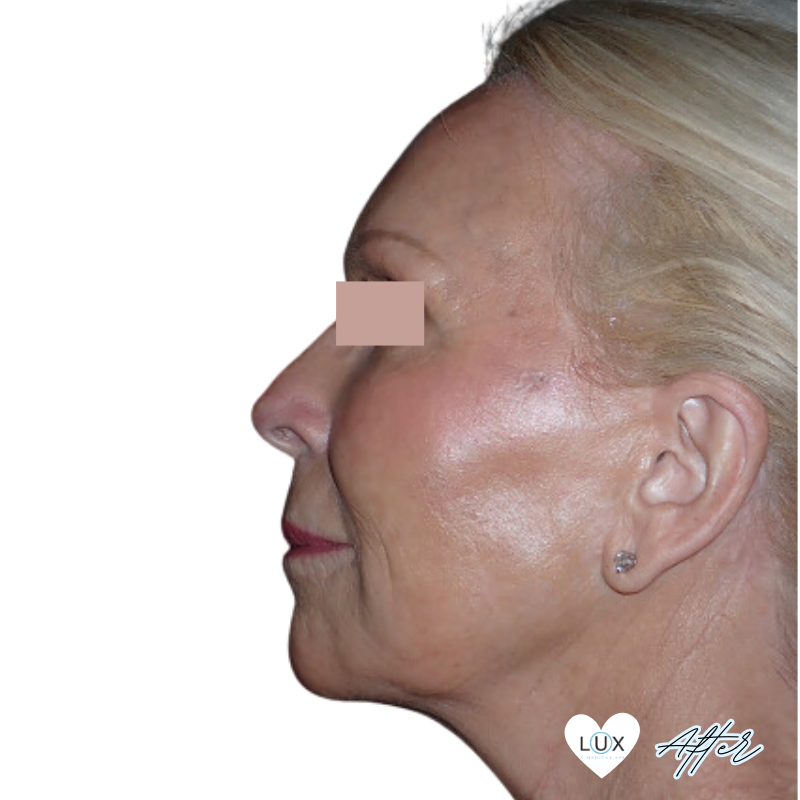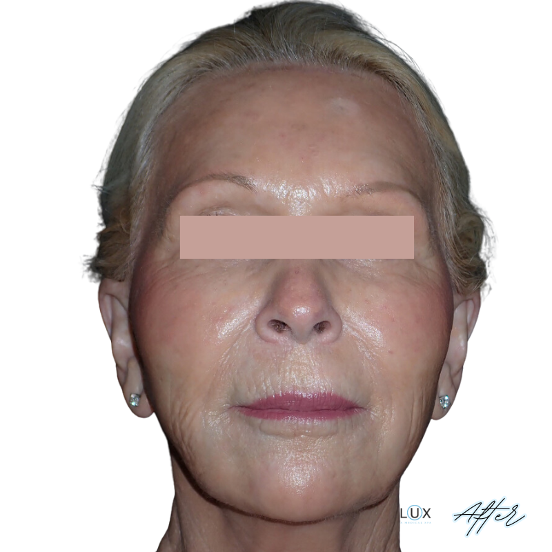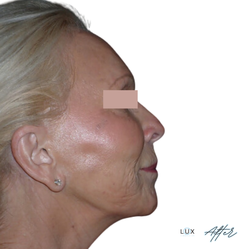 The patient wanted to address the volume loss to her cheeks, pre-jowling, and marionette lines. The patient received 4cc of Juvederm Voluma to her marionette lines and cheeks and 2cc of Juvederm VoLUX to address and pre-jowling. At the same appointment, the patient received 70 units of Botox for their forehead, glabella, and crow’s feet.