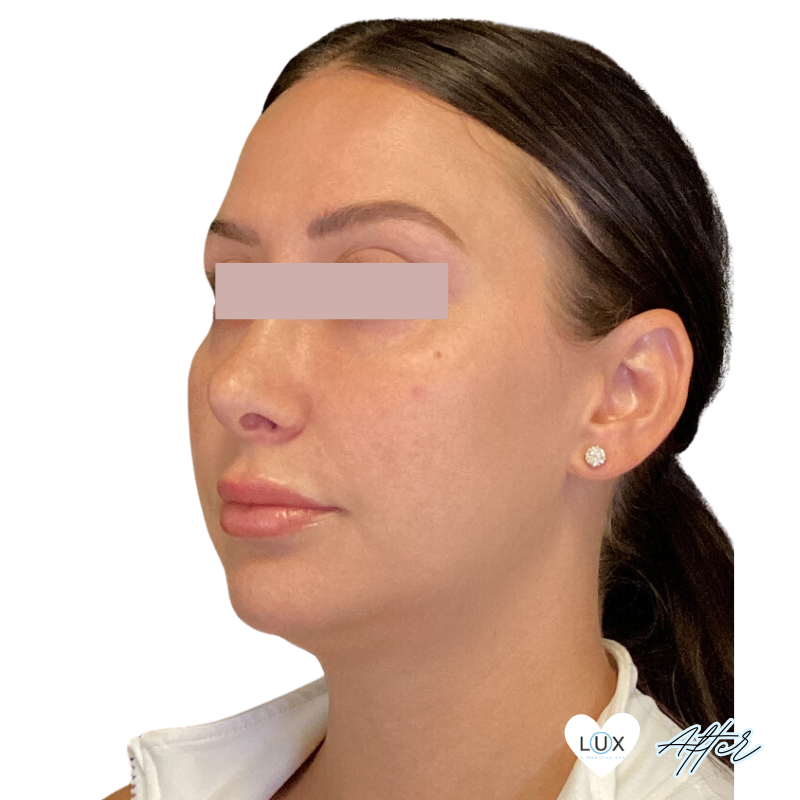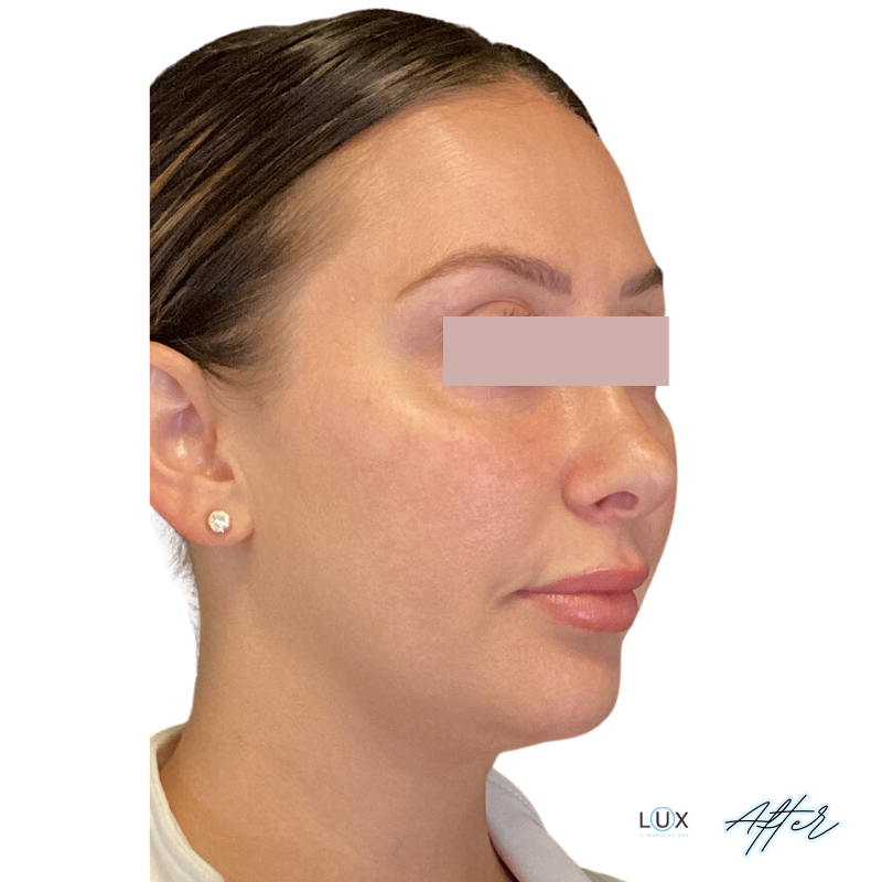 This patient received 3cc of Juvederm Voluma to her cheeks and chin to address volume loss and facial balancing. The patient received 2cc of Juvederm VoLUX to her jawline at a secondary appointment.