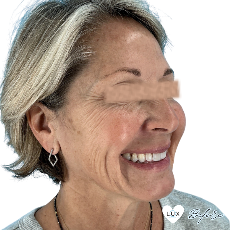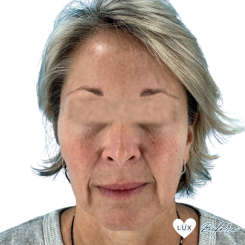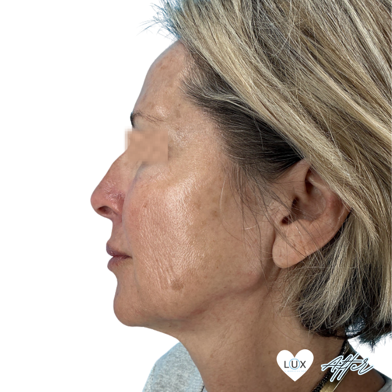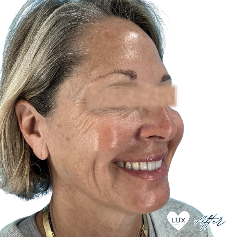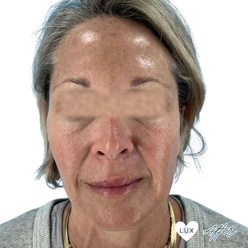 Patient was treated with 62 units of Botox to soften lines in the upper face. Dermal filler was used to enhance the lower face—1cc of Voluma to define the chin and jawline, and 0.55cc of Volbella for a subtle lip enhancement. Two weeks later, the patient received a HydraFacial with dermaplaning to boost hydration and radiance. This combination of treatments resulted in a refreshed, balanced, and glowing appearance.